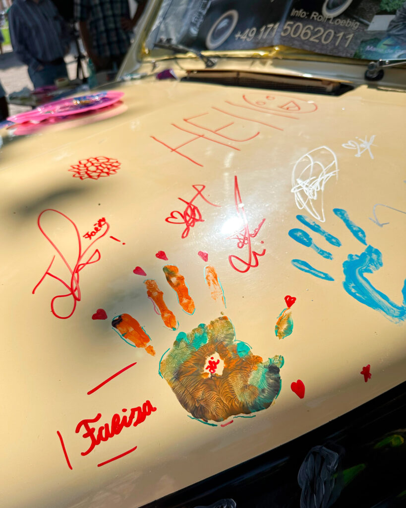 Das Art Car „Popeda“ wurde während der Tage von Kindern bemalt. Rolf E. Löbig ließ diesen GAZ M 20 Popeda (zu Deutsch „Sieg“) von Kindern mit Flucht- oder Migrationshintergrund bemalen. Der Popeda war ein Auto zu Ehren der Russen über den Sieg in Stalingrad. Er war s. Z. im Ostblock, so auch in der Ukraine aus der der Initiator stammt, als Taxi unterwegs.